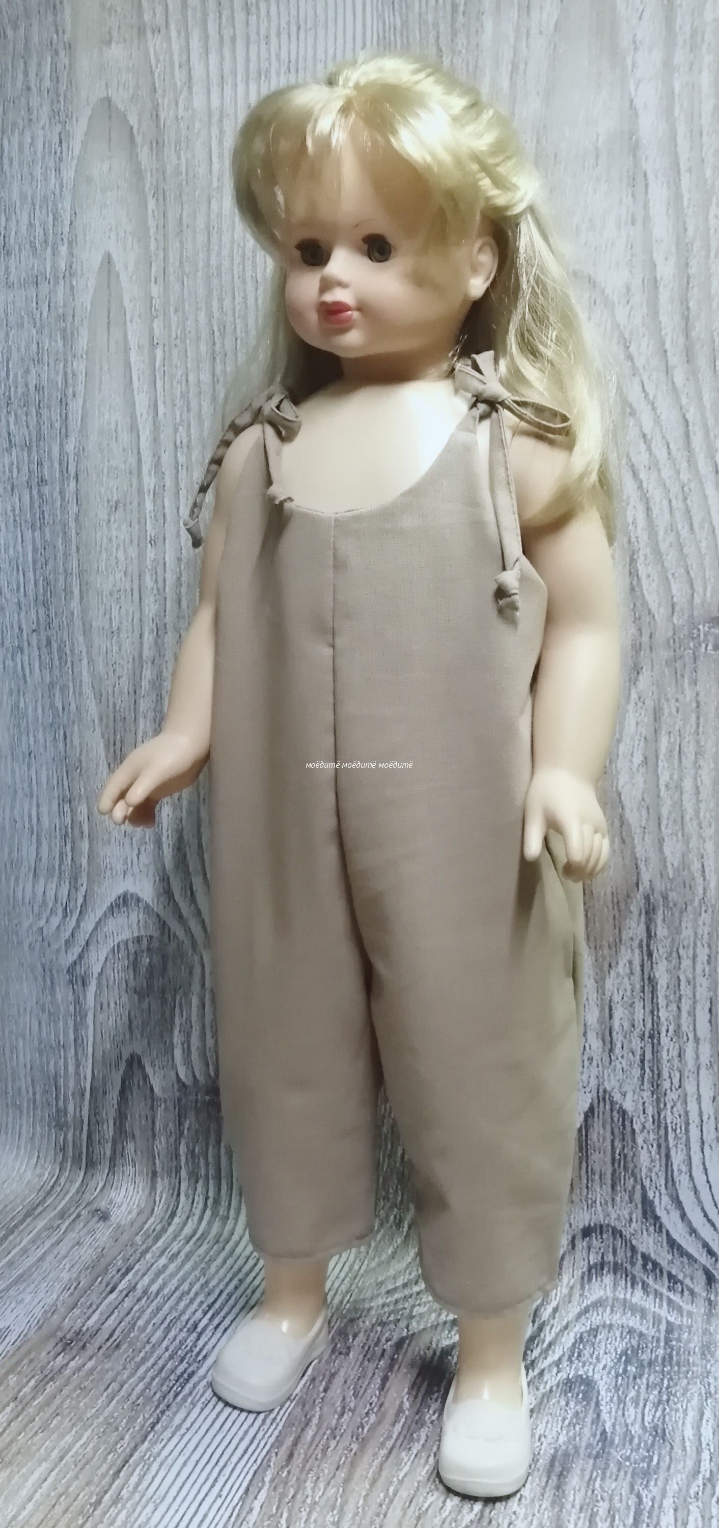 Песочник выполнен из льняной ткани. Сверху на завязках.
