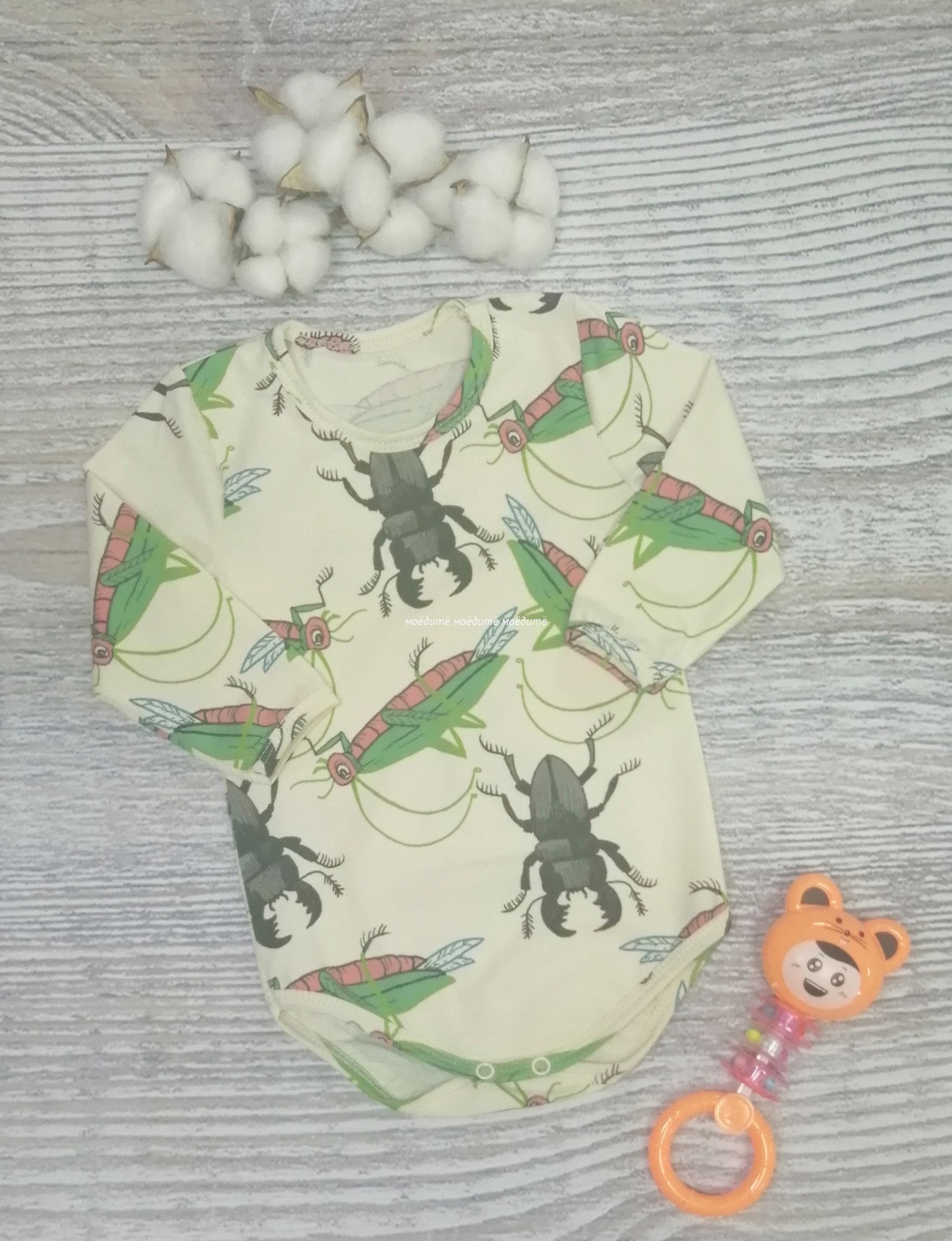 "МоёДитё" боди с лайкрой "Жуки" ББ177 "Магнолия"