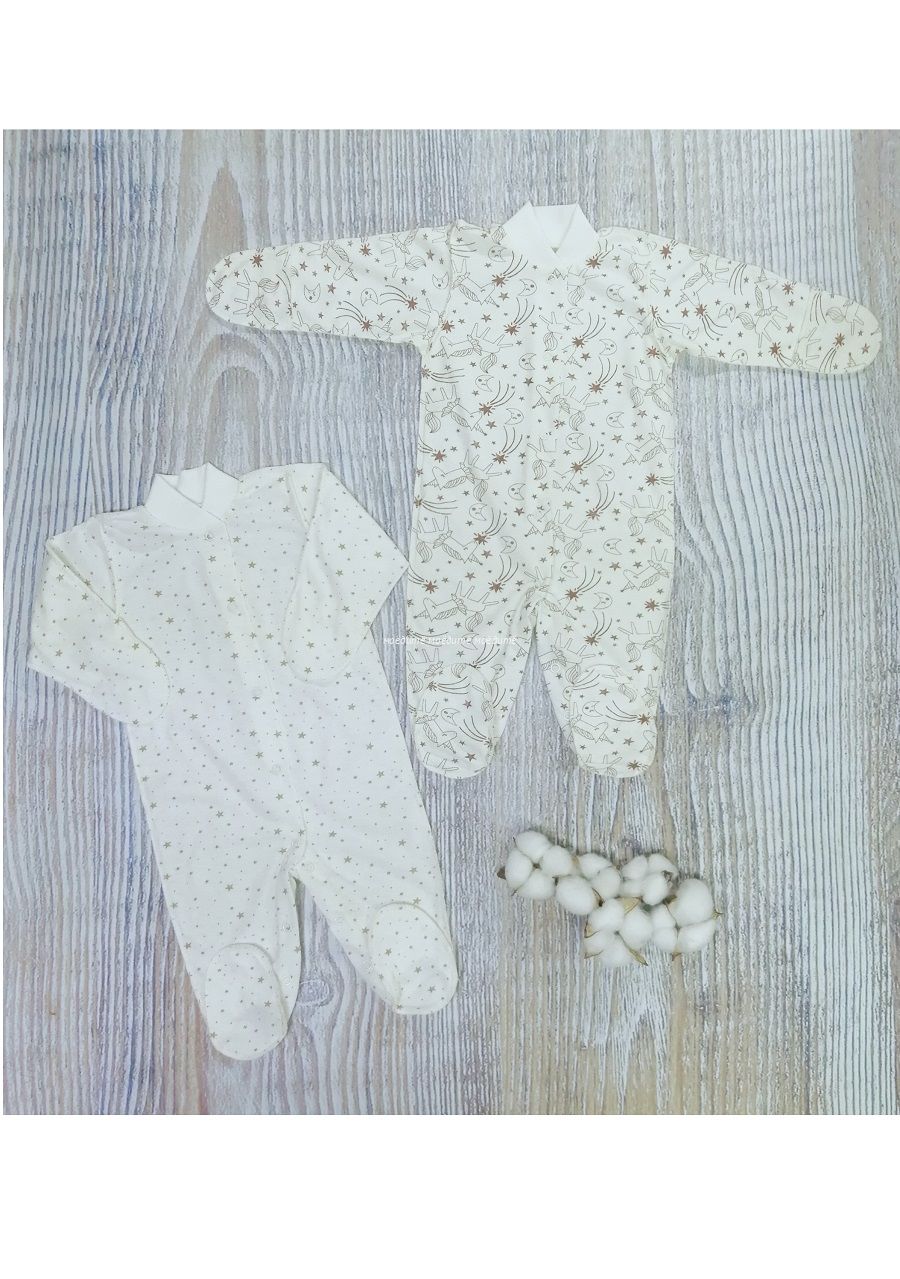 Комбинезон выполнен из 100% хлопка (кулирка), с закрытыми ножками, спереди на кнопочках и между ножек.