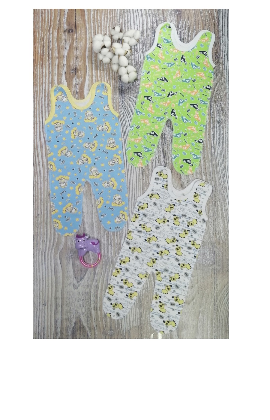 Ползунки с кнопочками на плечиках. В каждой упаковке и партии расцветки отличаются.Товар сертифицирован.